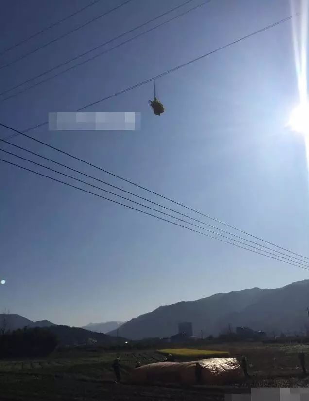 結(jié)果掛在高壓線上面。