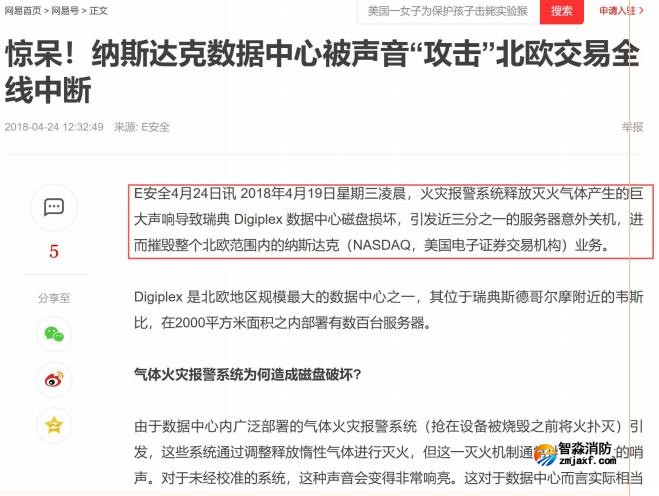 結(jié)論:本條是針對(duì)目前很多數(shù)據(jù)中心安裝氣體滅火系統(tǒng),經(jīng)過(guò)實(shí)驗(yàn)噴嘴噴放時(shí)的噪音達(dá)到100分貝以上時(shí),會(huì)造成服務(wù)器磁盤(pán)震裂而造成重大損失,在2018年4月份曾因氣體滅火噴放的巨大噪音導(dǎo)致瑞典數(shù)據(jù)中心大量磁盤(pán)損壞,有三分之一的服務(wù)器關(guān)機(jī),進(jìn)而造成北歐納斯達(dá)克業(yè)務(wù)停擺。