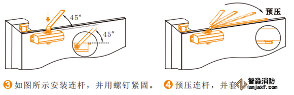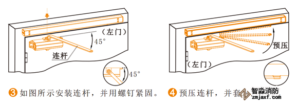 4) 確定好電動(dòng)閉門器的安裝方向(拉門側(cè)或推門側(cè))安裝閉門器滑槽及液壓缸;